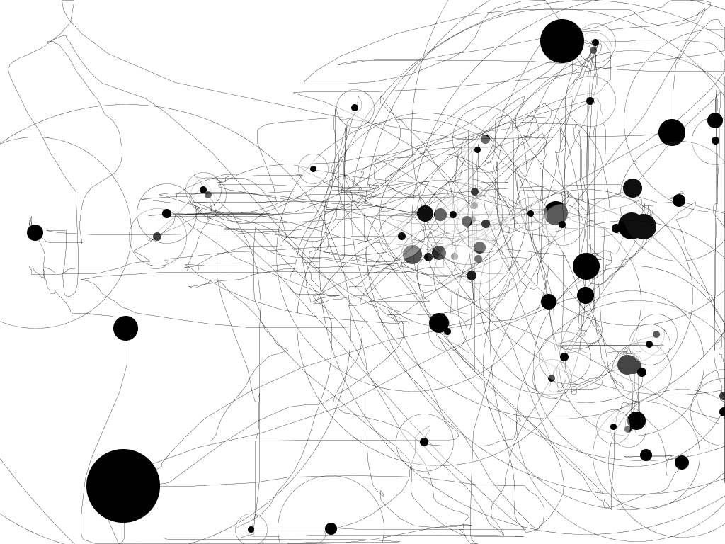 IOGraphica visually records the paths and clicks of your mouse as you work creating unique results every time you use it. See for your self. These are just a few of my creations from the last couple of days.